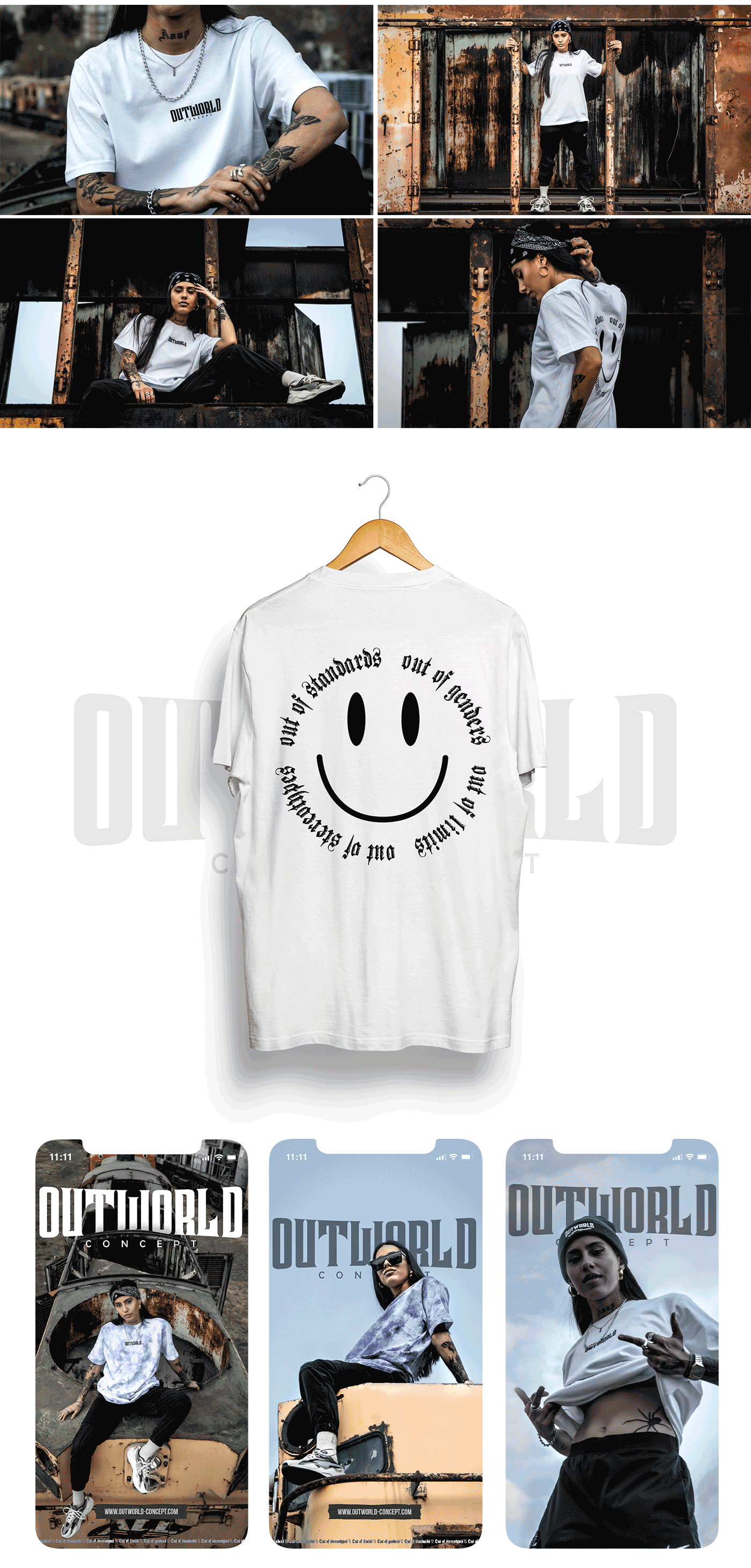 As Art Director for Outworld Concept, I developed a comprehensive visual proposal that spanned from aesthetic conceptualization to final production. I selected the location, model, and photographic style to reflect the brand’s contemporary and experimental identity. I also designed the graphics for the garments and prepared the final screen-printing files, ensuring technical precision and visual coherence throughout the process.